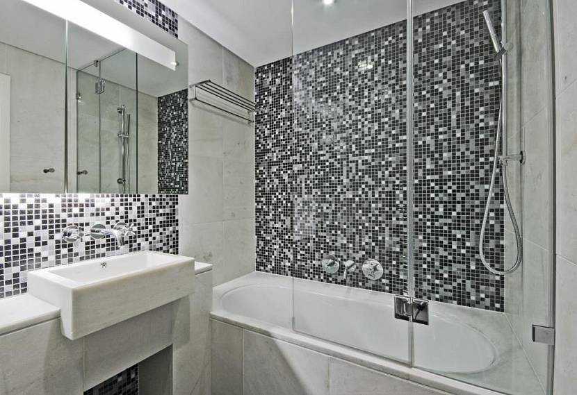- Мозаичная. Состоит из стекла или керамогранита. Такая облицовка считается прочной и экологичной. Имеет широкий ассортимент и отличается узорами и геометрической формой.