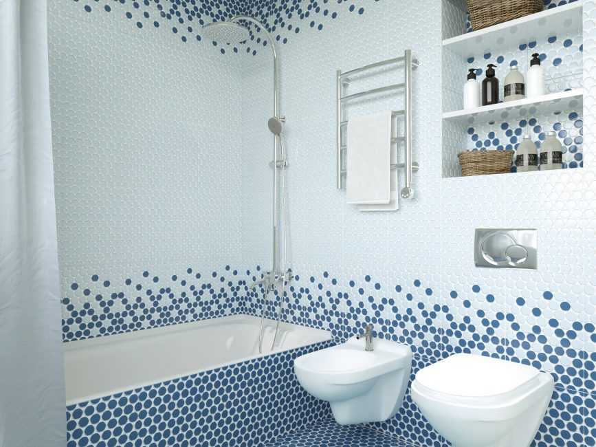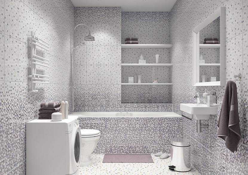 Кафель небольшого размера отлично подходит для оформления функциональных зон: за умывальником, вокруг ванной или в районе унитаза. Такая облицовка хорошо применяется для оформления стен целиком. Главная задача в таком случае — сообразить, какой необходим рисунок.