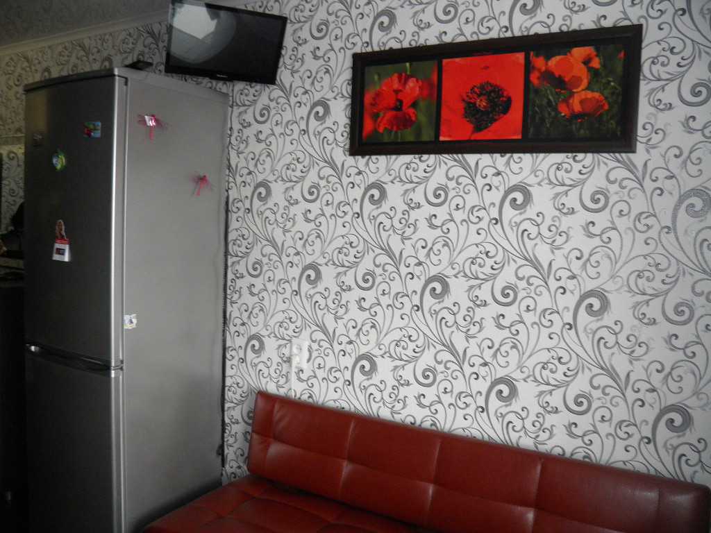 - Крупный рисунок не годится для небольших комнат, он скрадывает объем, уменьшает помещение в размерах; для маленьких кухонь нужно подбирать мелкий ненавязчивый орнамент;