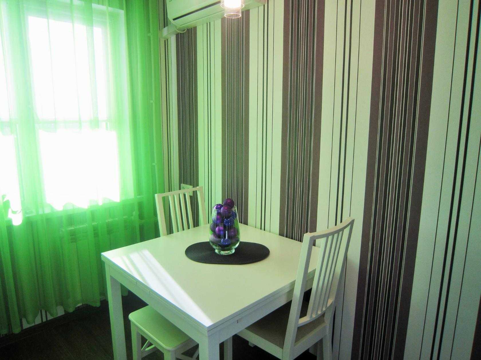 Зеленые обои придадут помещению праздничности и легкости. Главное, чтобы обои были однотонными.