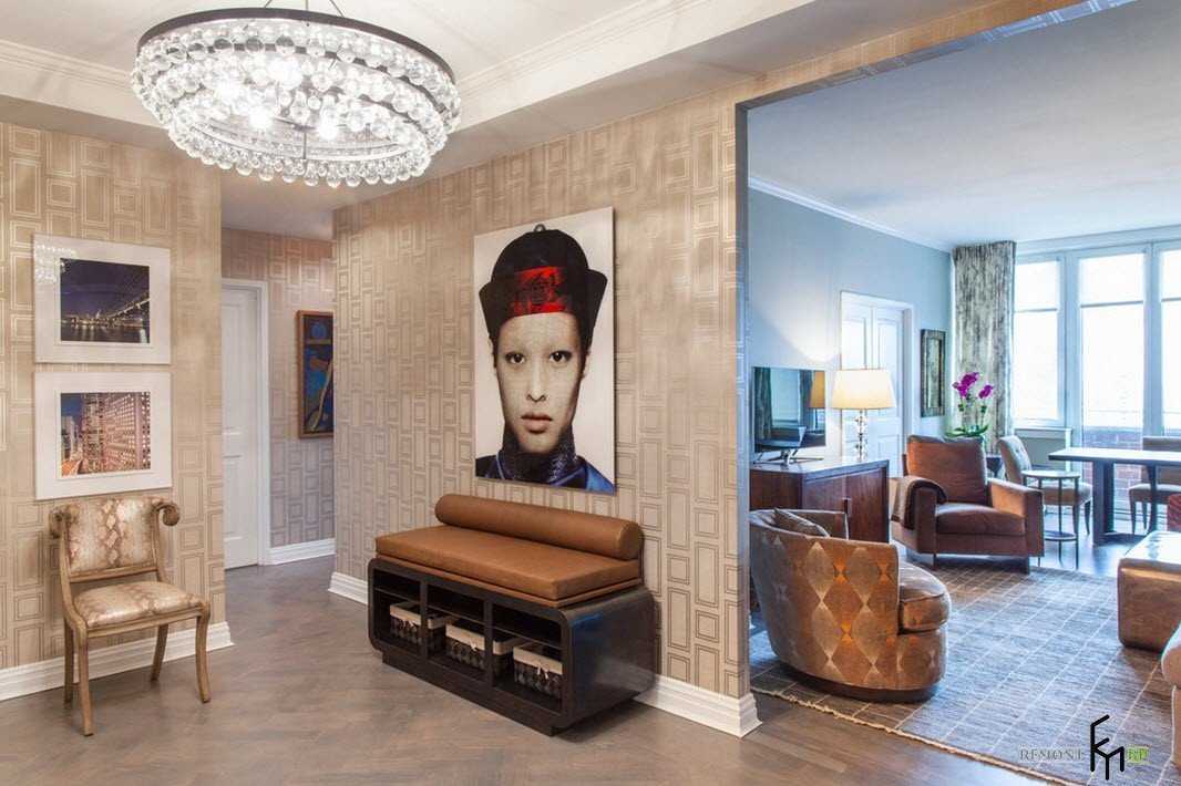 Крупный рисунок – станет великолепным украшением для просторной прихожей с холлом.