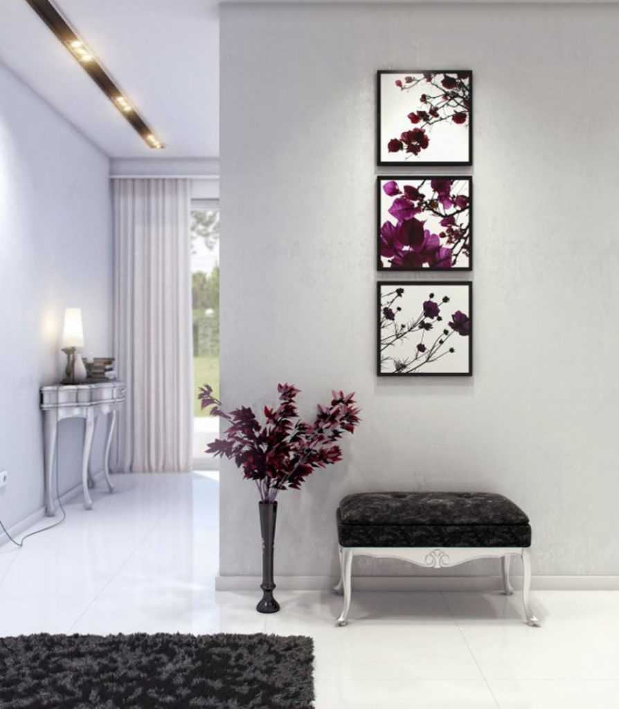 Крупные цветы будут отлично выглядеть в скромной прихожей