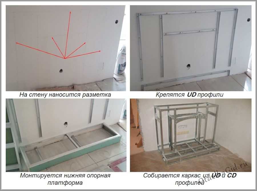 Как и все монтажно-строительные процессы, сооружение камина из гипсокартона делится на несколько этапов.