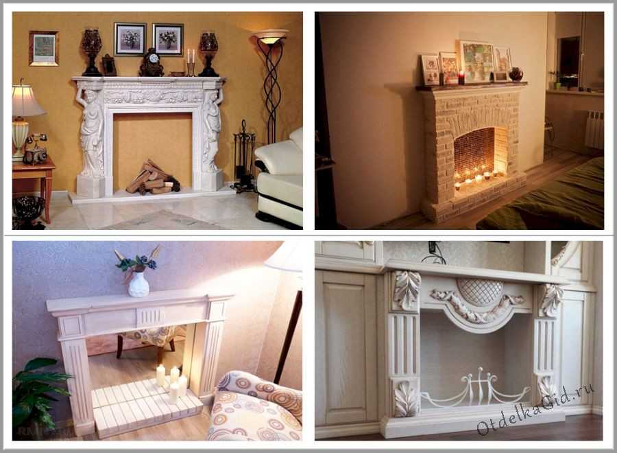 Если вы не обладаете необходимыми навыками или временем, можно сделать только каркас с нишей и приобрести готовый портал для камина из полиуретана, подобранный по размеру вашей топки.