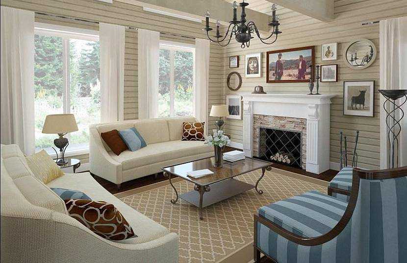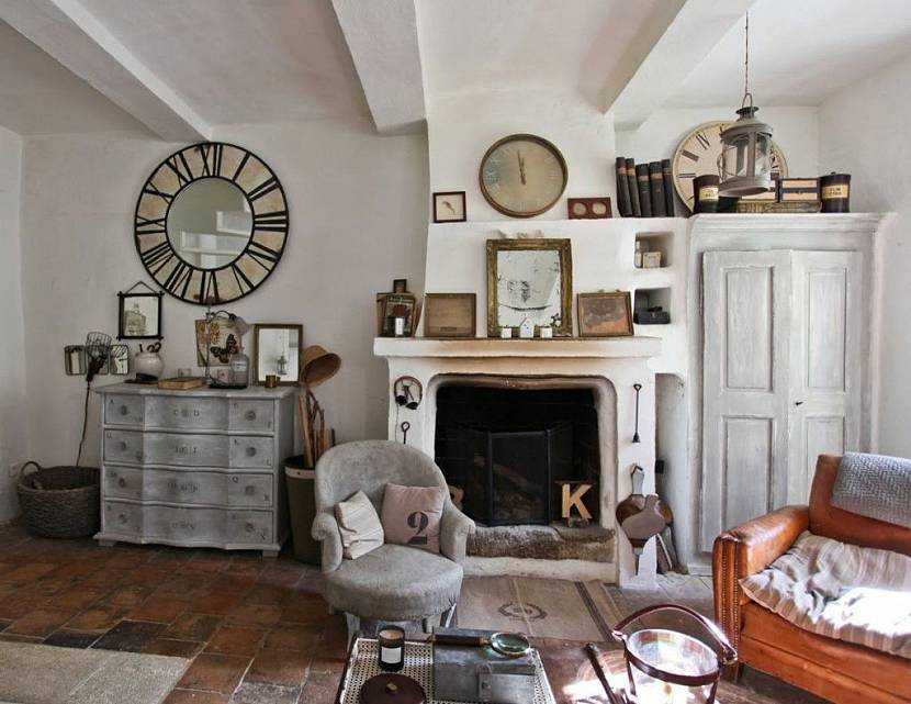 Дословно название стиля переводится с английского языка как «провинция» или «деревня», что подразумевает использование простых, но эффективных решений. Поэтому в качестве материала для таких каминов чаще всего используется легкий в обработке, пористый, и отлично удерживающий тепло камень – «песчаник» или «ракушечник» (в некоторых регионах – «ракушняк»). Наружная часть дымохода чаще всего отделывается гипсовыми материалами, которые легко обрабатываются и не требуют долгого застывания.