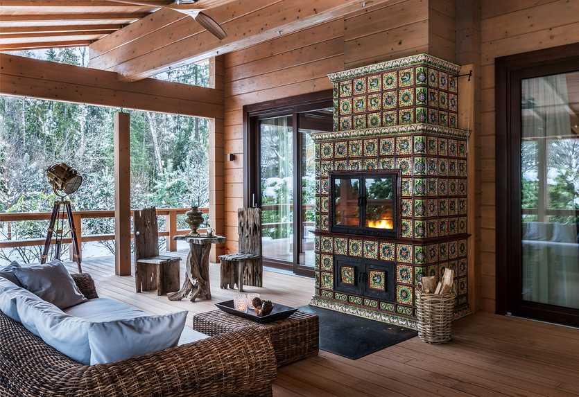 Для облицовки камина подойдет терракотовая плитка, майолика и изразцы, керамогранит и клинкерная плитка. От выбора фактуры и рисунка отделочного материала во многом зависит дизайн гостиной в доме с камином. Майолика и изразцы чаще используются в традиционных классических интерьерах, в то время, как керамогранит подойдет для современной обстановки и стиля хайтек.