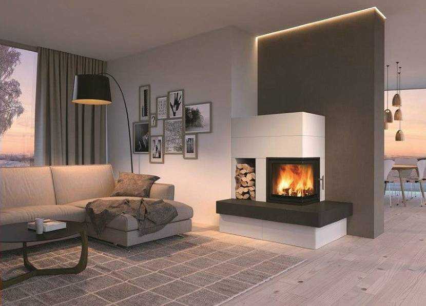 Если на фото в интерьере гостиной — пристенный угловой камин, вероятно, это шведский, датский или питерский дом: там такие варианты очень распространены.