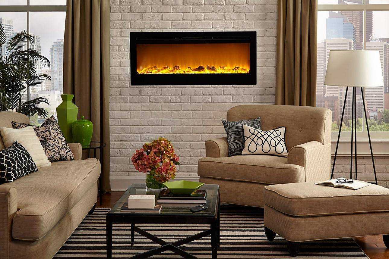 Электрический камин в интерьере гостиной