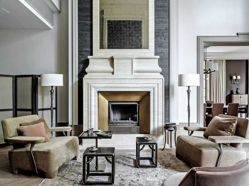 Интерьер гостиной с камином в частном доме важно продумать до мелочей: один из элементов, на который стоит обратить внимание – отделка дымохода и внешней части камина