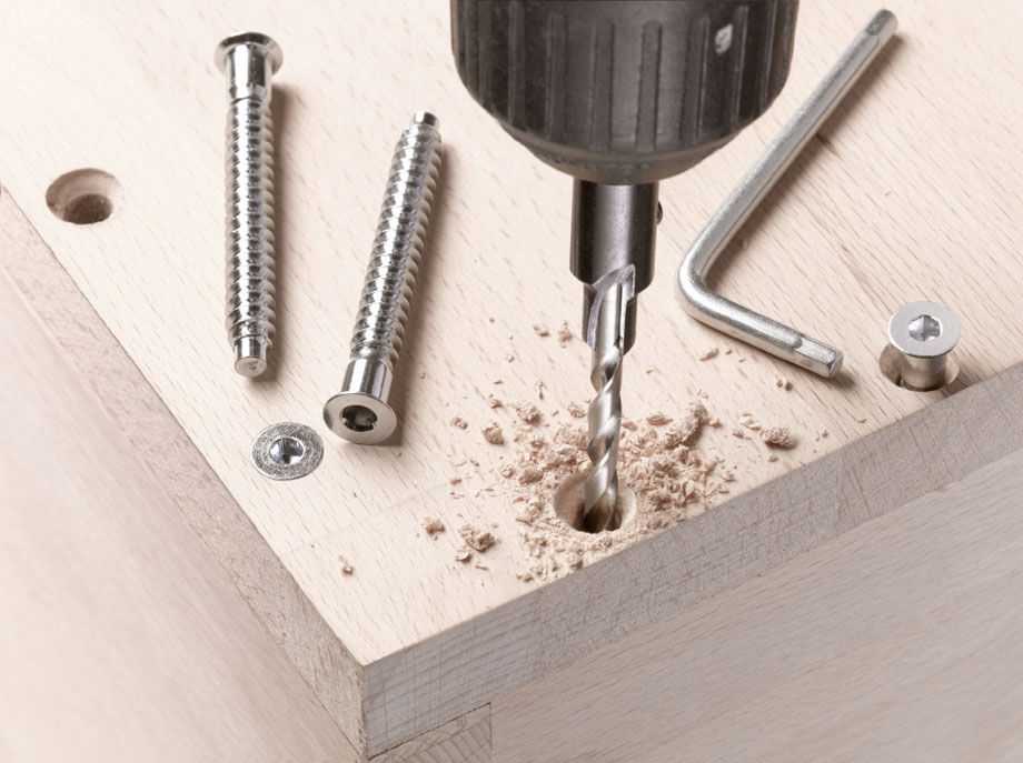 - 4. Все элементы поэтапно соедините в единую конструкцию, ввинчивая конфирматы специальным ключиком.