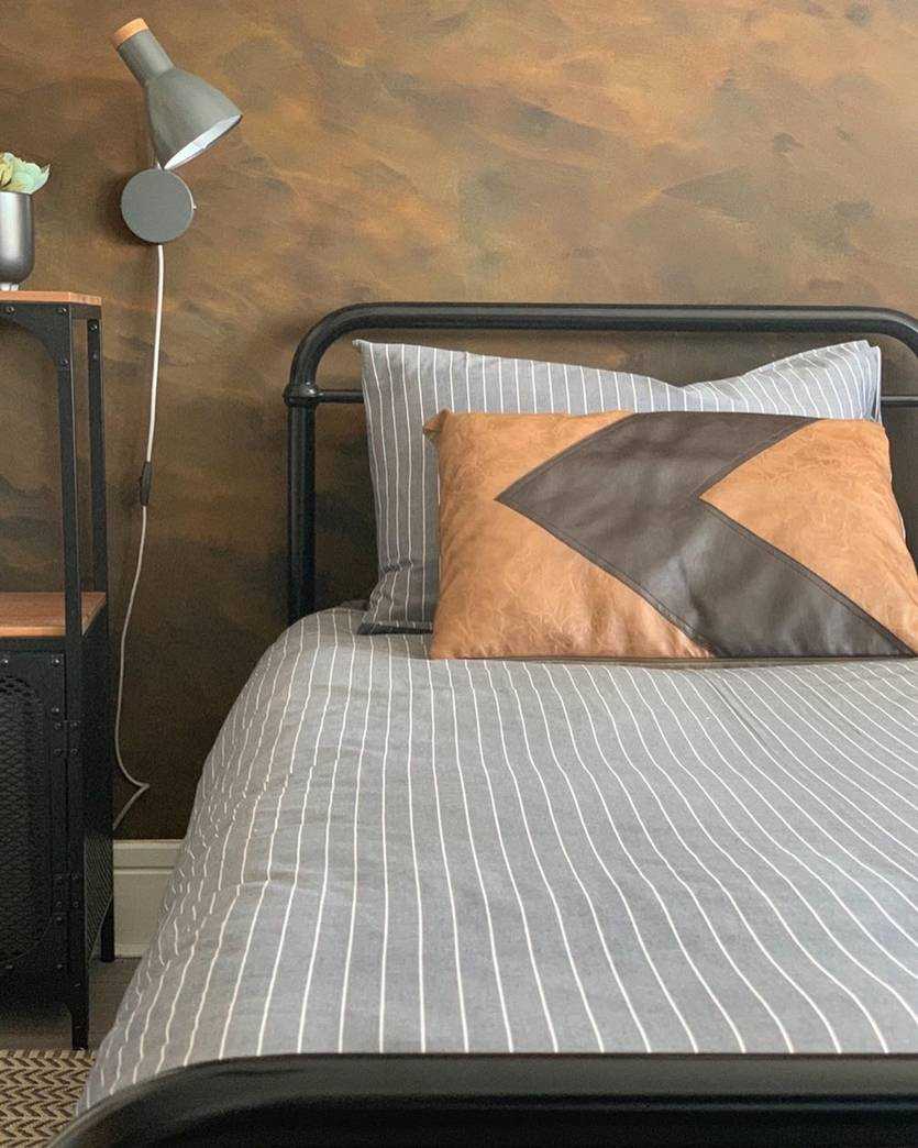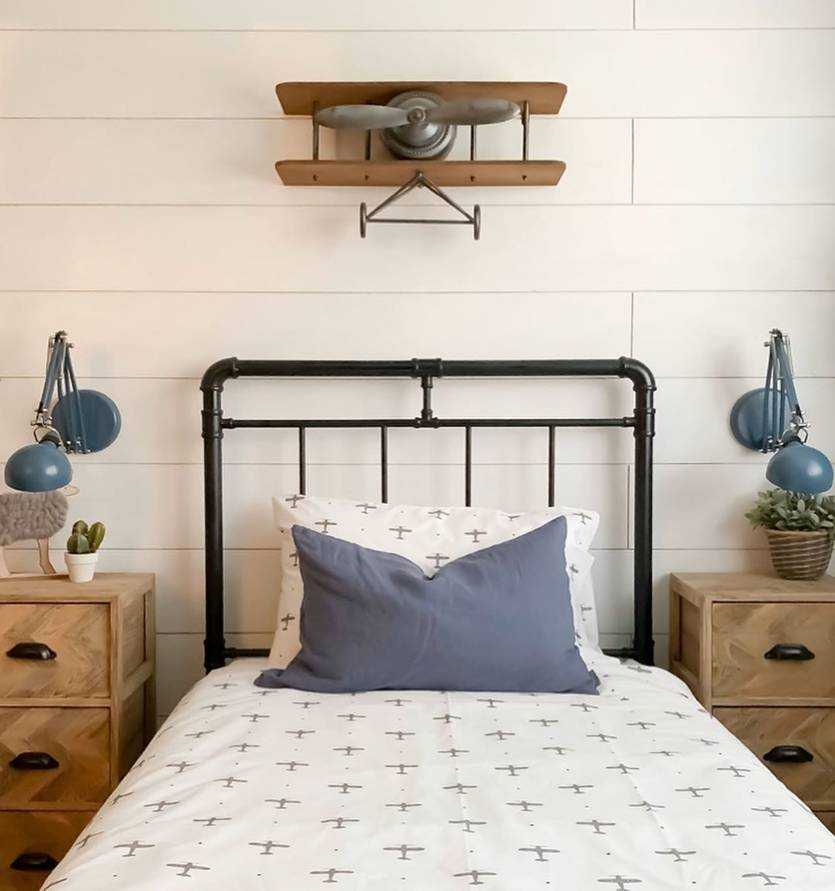 Ретро-кровать, письменный стол-верстак, промышленные светильники – подходящие атрибуты для комнаты в индустриальном стиле
