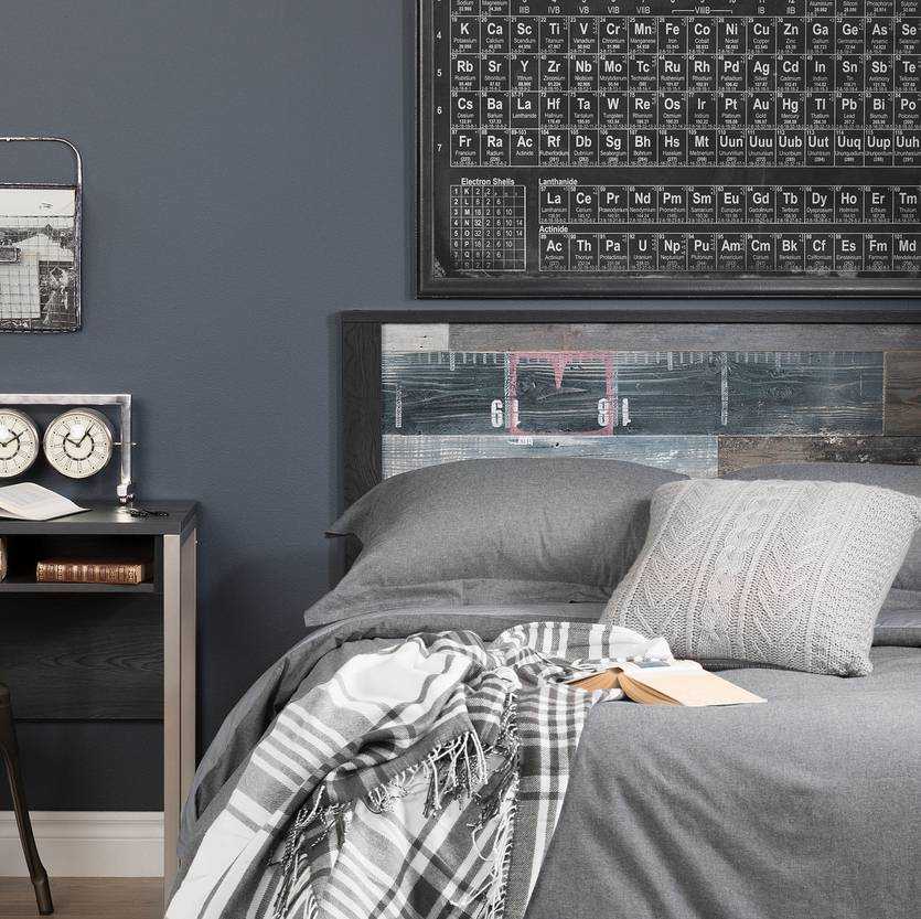 Оригинальный дизайн спальни для современного подростка – это индастриал. Он подойдет для просторного помещения, где все максимально функционально. Используемые цвета – бетонно-серый, кирпично-коричневый, темно-древесный. В комнате, как будто бы, половина вещей привезена со свалки, но каждому предмету находится особое применение.