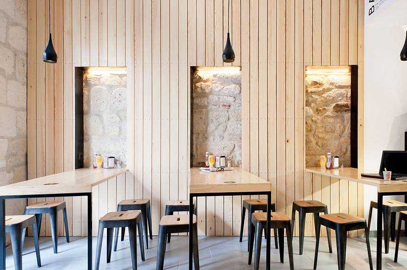 Ниши в шлакоблочных стенах кафе, выполненного в стиле современного лофтаИсточник architizer.com