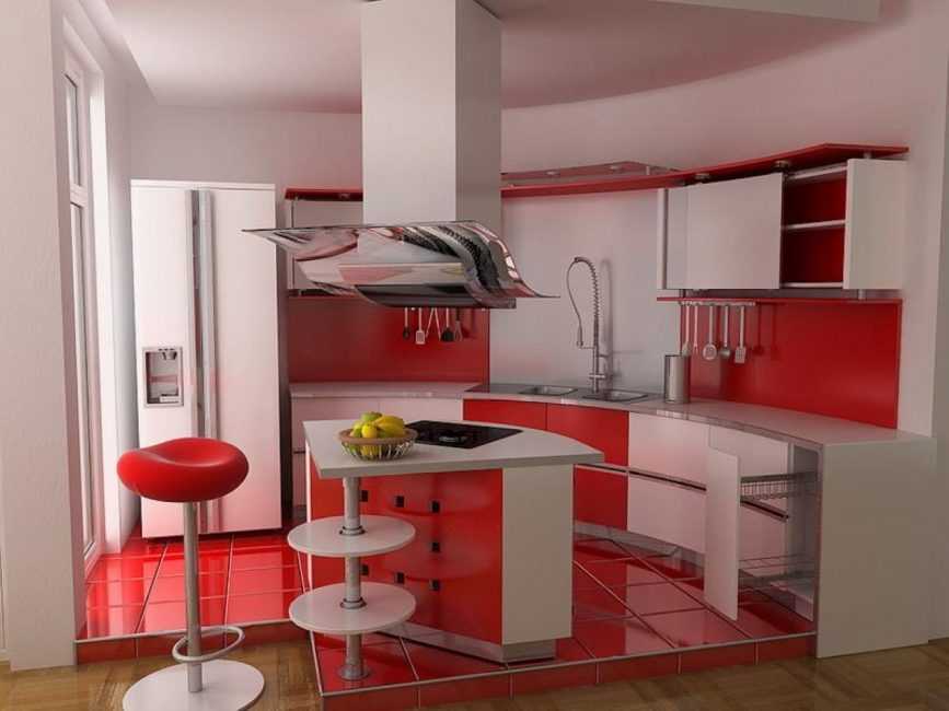 Красный цвет сделает кухню – «хай – тек» более комфортной, уютной и теплой. Ведь этот оттенок дружит с хромированными предметами и черно-белыми вкраплениями в общую цветовую составляющую.