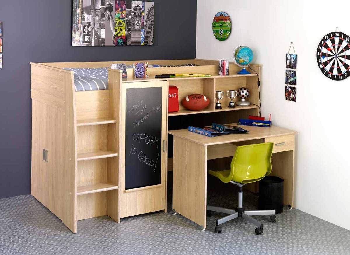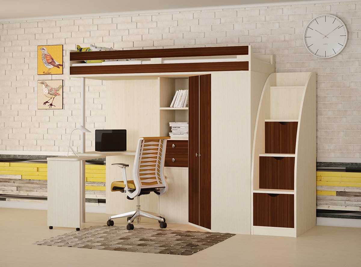 - экономия средств — если произвести подсчёт денег, потраченных на покупку отдельно стоящих кровати, письменного стола, полок и кровати данного типа с рабочим местом, то выгода видна. Затраты на отдельные элементы интерьера окажутся значительно выше;