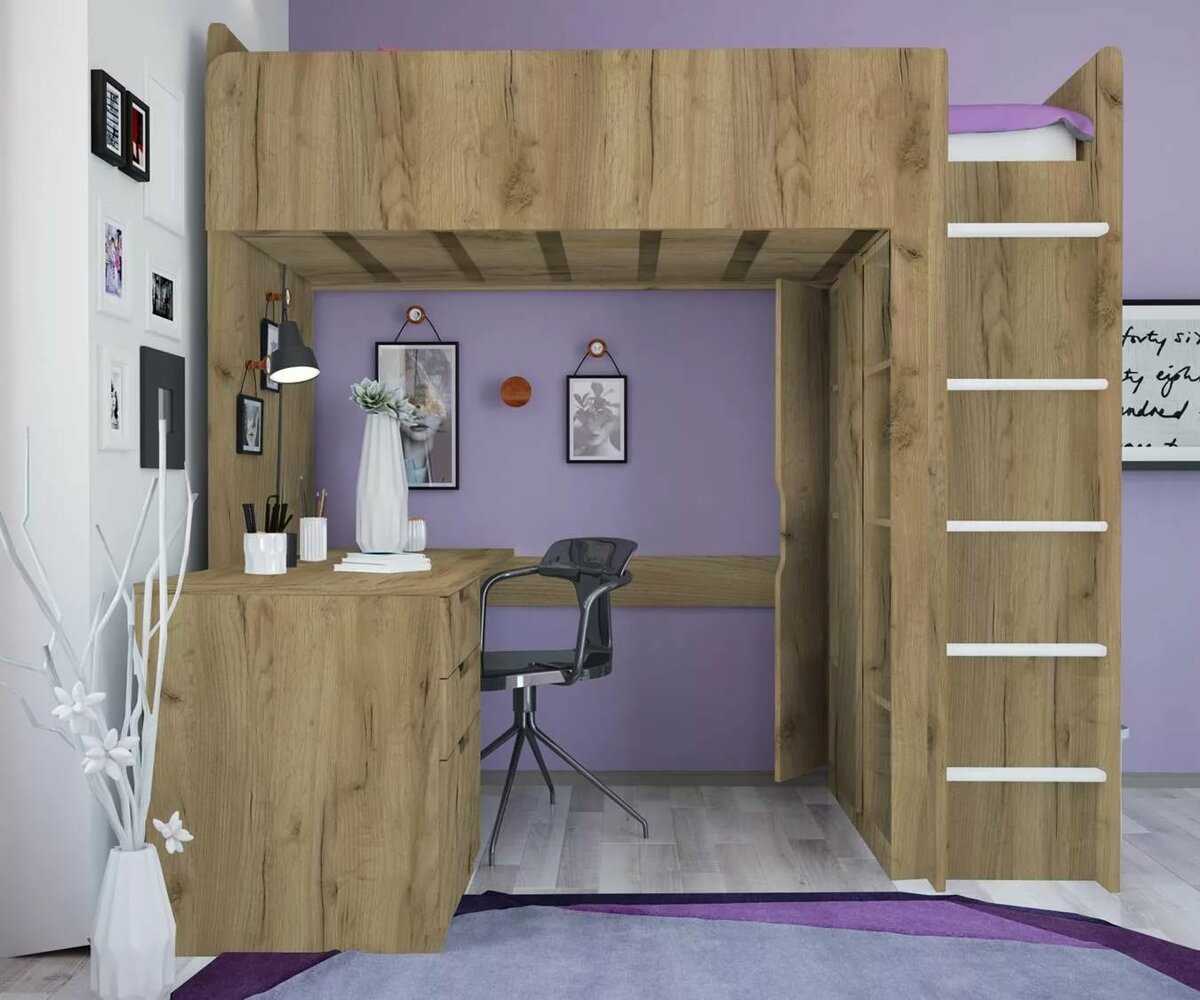 Выпускается несколько разновидностей кроватей-чердаков. Чаще всего они отличаются по набору мебели, которая располагается на нижнем ярусе: