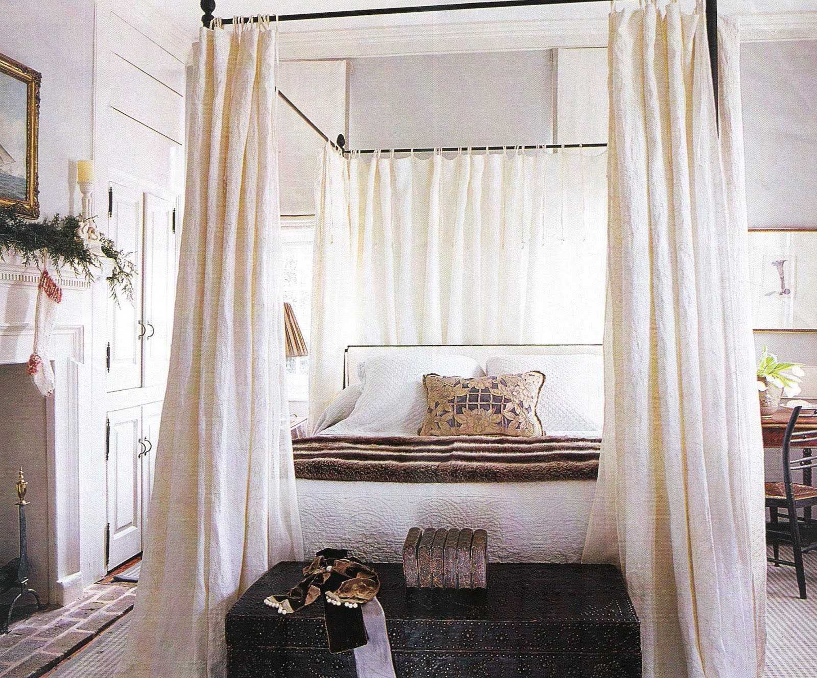 Неожиданное сочетание прямых линий и мягких драпировок, элегантное перекрещивание прозрачных штор и тёплое освещение – это рецепт для очаровательной комбинации стилей. Множество программ обучает тому, как сшить занавески для дома. Если вам нравится создавать что-либо своими руками, то достаточно найти старую кровать с пологом и с помощью современных тканей восстановить в ней былое очарование.