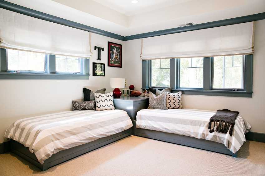 Для ребенка подросткового возраста можно выбрать балдахин, закрепленный по периметру. Если кровать двухъярусная, нижний этаж можно закрыть занавесками и превратить в уютный домик для игр. Порой производители внизу устанавливают диван, на котором очень удобно играть. Выбирайте ткани нейтральных, нераздражающих цветов или по половой принадлежности. Для девочек традиционно выбирают розовые оттенки, для мальчиков – голубые или синие.