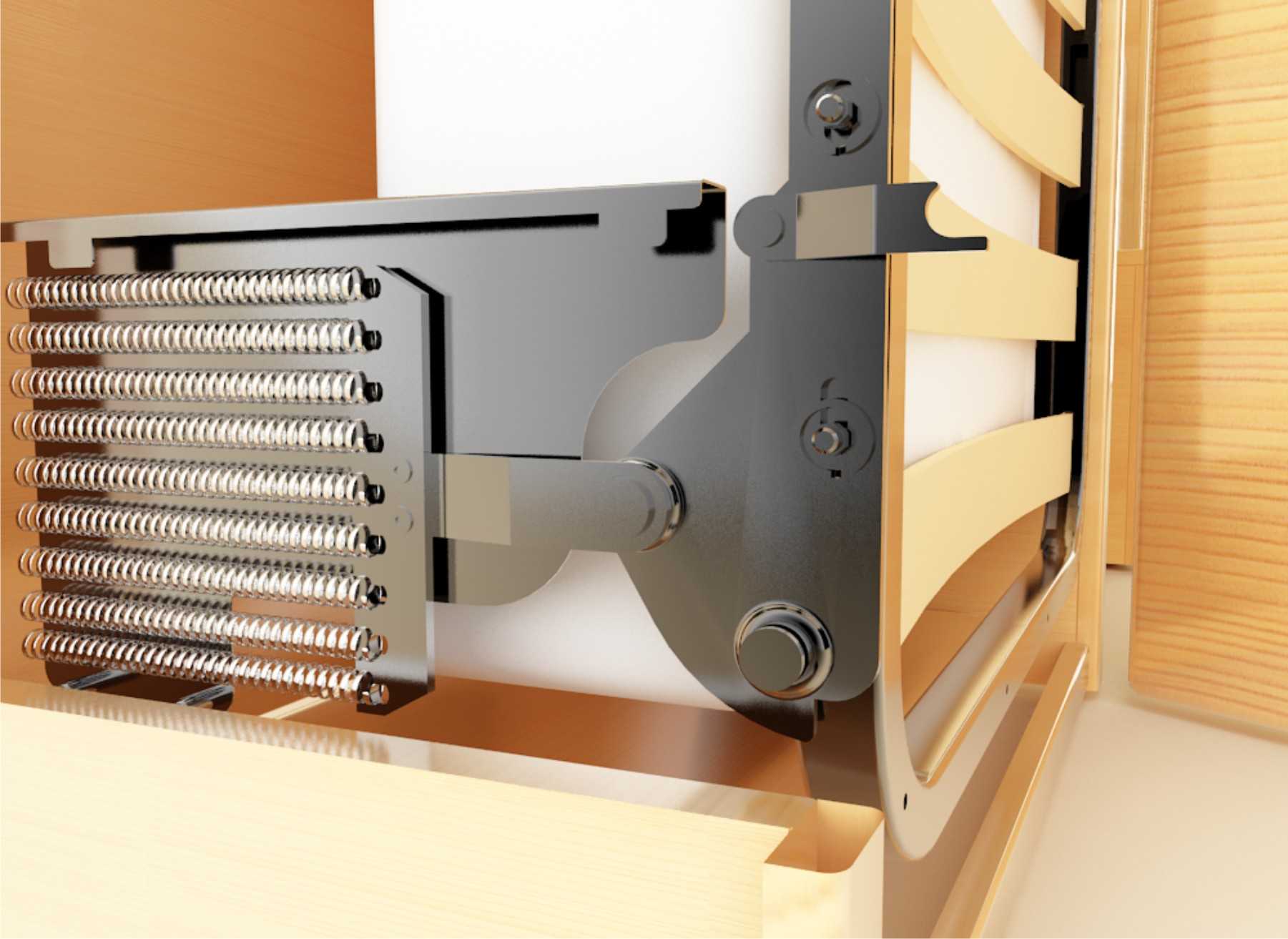 Ламели представляют собой каркас, на который в будущем будет располагаться матрас. Конструкция состоит из основания (как правило металлического) и деревянных реек. Их монтаж в готовое изделие происходит очень легко, достаточно поместить ламели в короб.