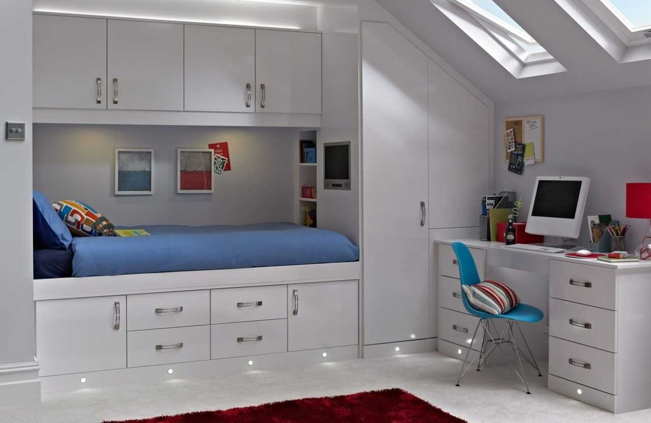 - Встроенной двухъярусной конструкции, совмещающей игровую или учебную зону со спальным местом.