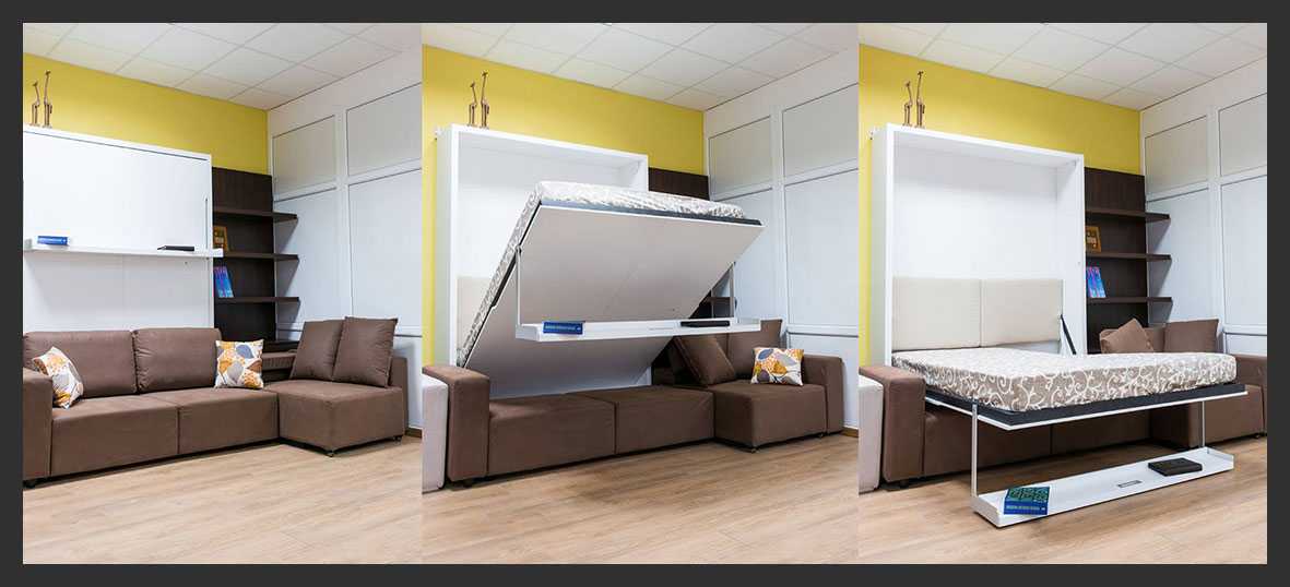 Кровати-трансформеры представляют собой мебель, которая при надобности превращается в изящный шкаф, который будет идеально вписываться в интерьер небольшой квартиры. Зачастую в мебельных салонах представлена вертикальная модель шкафов-трансформеров.