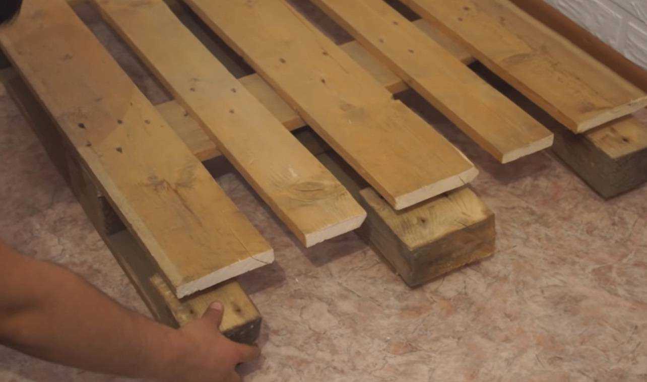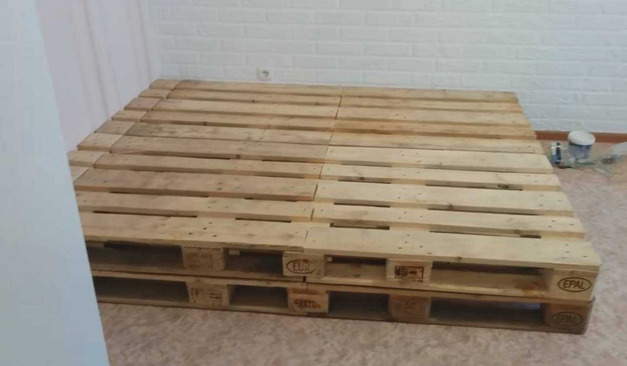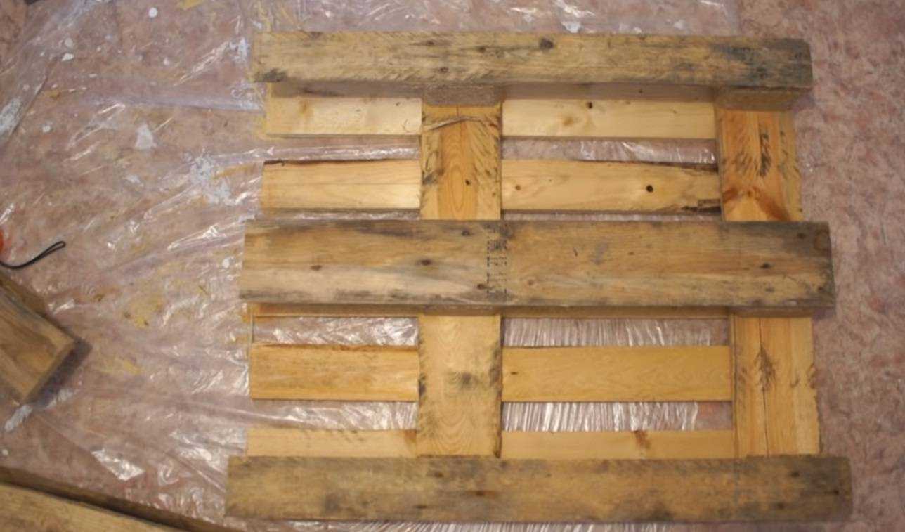 Шаг 1. Купите необходимое количество паллет и занесите их в квартиру. Желательно подстелить под деревянные конструкции полиэтилен, чтобы не испачкать половое покрытие.