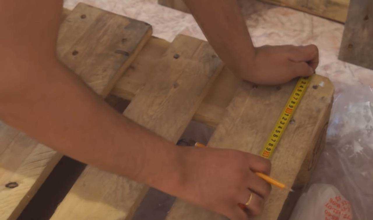 Шаг 7. Соедините две предварительно обрезанные паллеты вместе. В итоге у вас получится один длинный поддон.