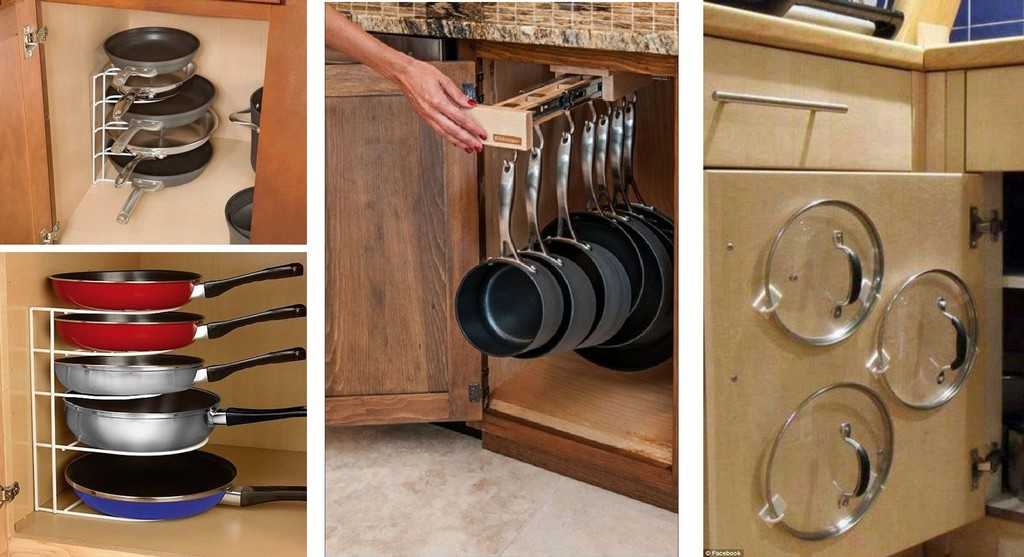 Продуманное внутреннее наполнение способно превратить даже самый маленький гарнитур в супервместительный. О том, как рационально организовать хранение под мойкой, в угловом модуле и ящиках мы уже писали выше. Приведем еще пару полезных идей того, как можно сделать гарнитур более функциональным.