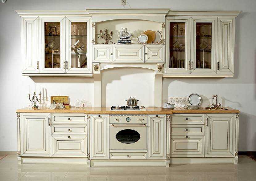 Даже если вы решите использовать преимущественно белый цвет, не забывайте, что для кухни в стиле светлой классики моноцветность не характерна. Придется добавлять акценты: например, бежевый или золотой тон.