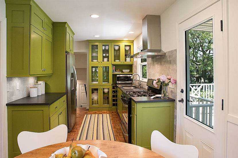 Зеленый (дерево). Этот цвет символизирует природу, и потому считается оптимальным для оформления кухонного помещения. Он позитивно влияет на психику, улучшает физические кондиции, расслабляет и успокаивает глаза. Особенно много жизненной энергии ци несет сочетание зеленого и белого, в такой кухне поднимается настроение, формируется атмосфера добра и уюта.