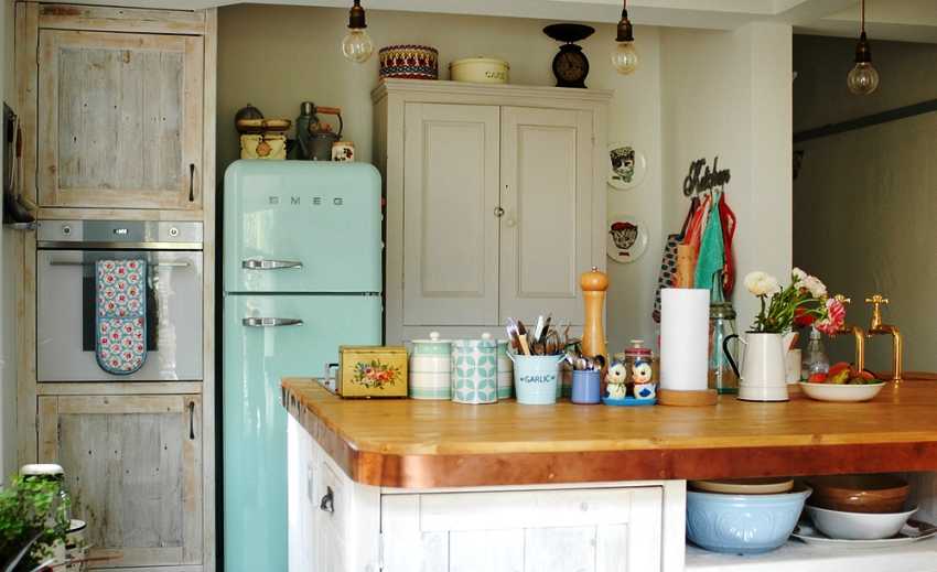 То же касается и техники: её дизайн может быть и винтажным, и современным. Однако приборы и агрегаты в стиле ретро придают кухне более аутентичный облик, делают её душевнее и уютнее.