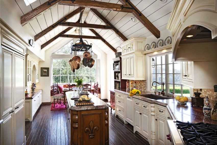 Принято считать, что этот стиль идеально подходит для кухни, расположенной в загородном доме, просторной и светлой, уютной и такой «домашней».