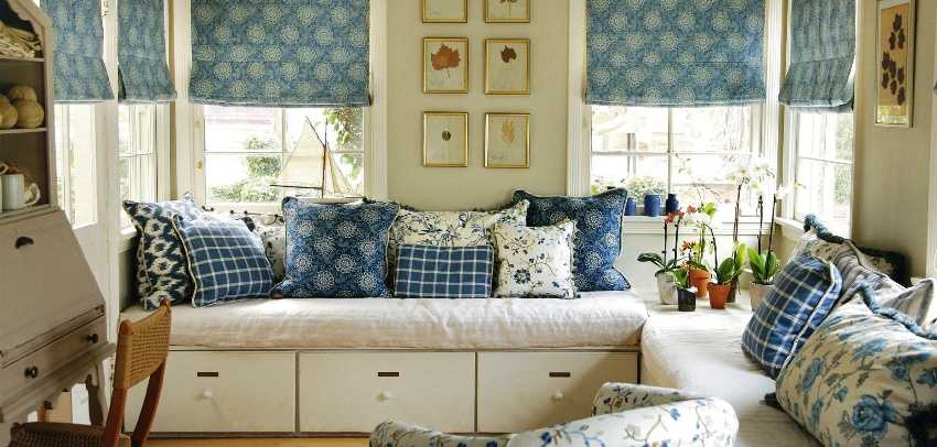 В основе комбинации синего и песочного лежит морская тематика, которая тесно связана с данным направлением.