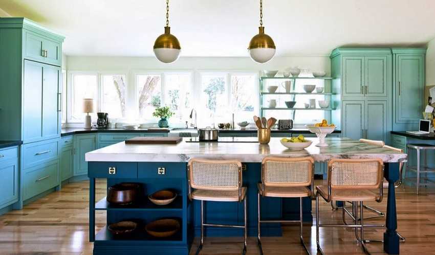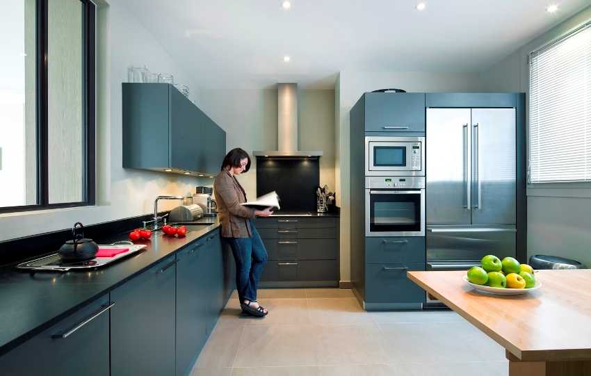 Вам придется промерять помещение, выбрать место для рабочего треугольника и только после этого, учтя все выявленные нюансы, начать выбирать предметы обстановки. Может случиться так, что стандартные предложения вас категорически не устроят, поэтому будьте готовы к заказу индивидуальной мебели.
