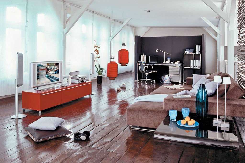 Чем дальше комната от квадратной формы, тем больше она нуждается в зонировании, то есть разделении на отдельные функциональные части, например, для работы и отдыха, сна и развлечений. Сделать это можно несколькими способами:
