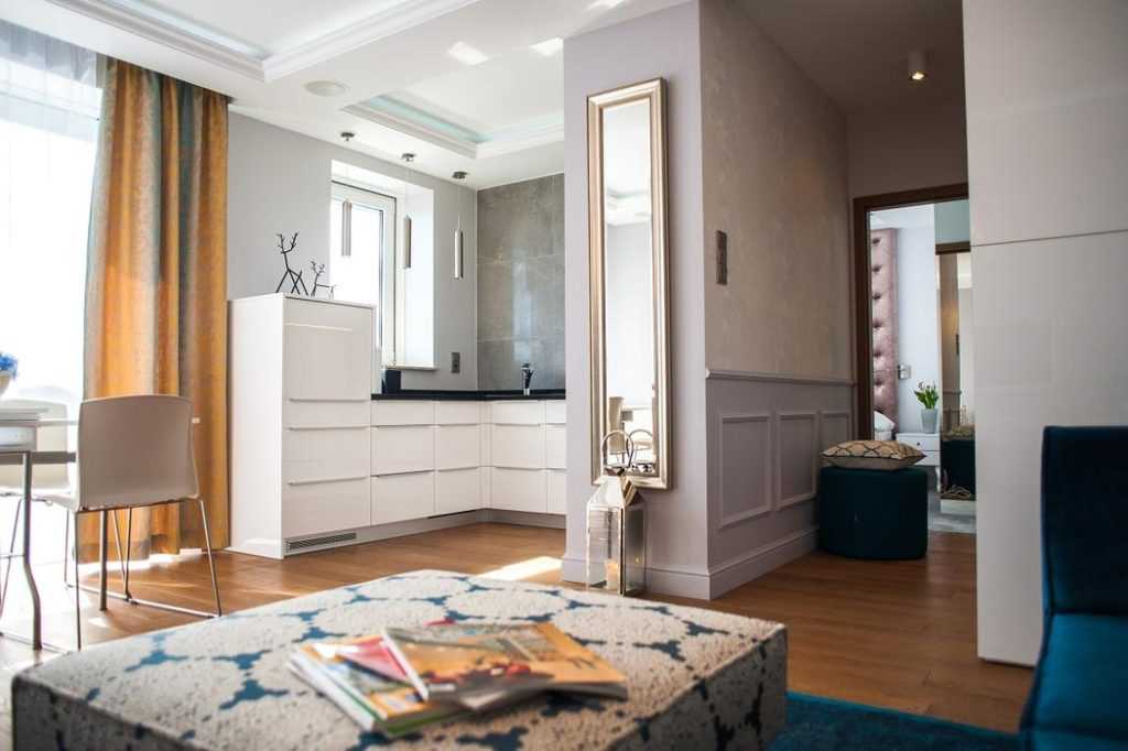 - Выбирайте изящную модульную мебель, не перегружайте внутреннее убранство лишними деталями, особенно массивными.