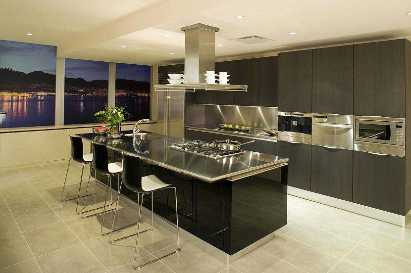 Модерн – это обязательная плавность, переход от одного элемента к другому. Именно в этом стиле часто используют кухонные острова и полуострова. Здесь уместны не только столы, но и барные стойки.