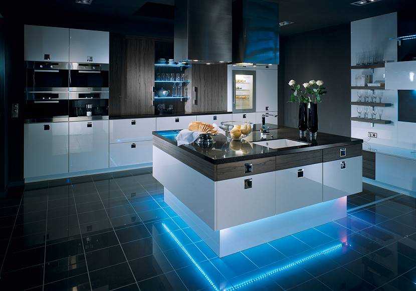Увеличить пространство визуально помогут зеркальные, стеклянные и глянцевые поверхности, используемые в фасадах гарнитура, при обустройстве кухонного фартука и даже столешниц.