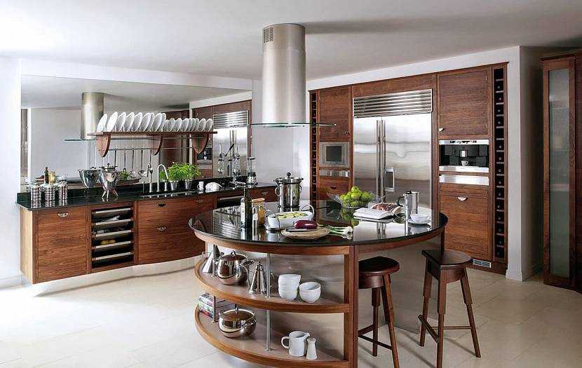- Островная. Варочная плита и зона мойки обустраиваются посреди кухни (допустимый размер комнаты не менее 25 кв.м.).