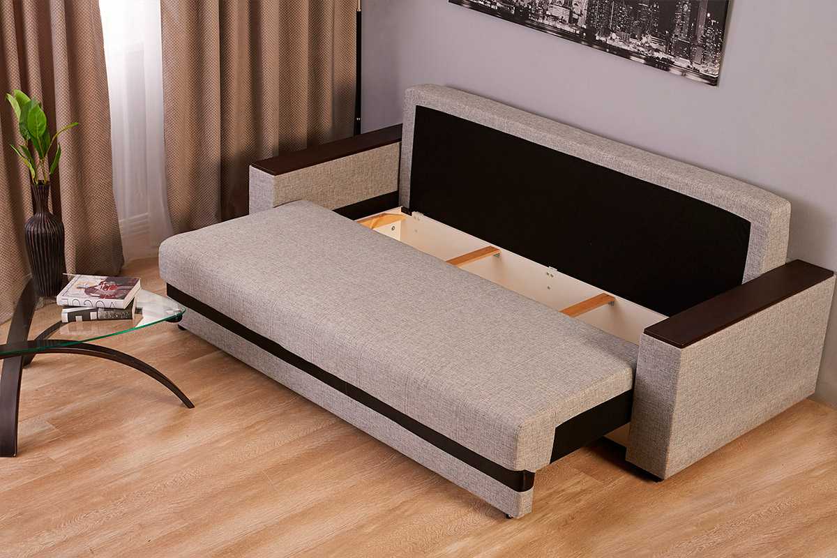 В условиях небольшой квартиры, где требуется грамотно использовать все доступное пространство, следует позаботиться о том, чтобы диван имел дополнительный отсек, в котором можно хранить постельное белье или зимнюю одежду