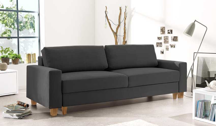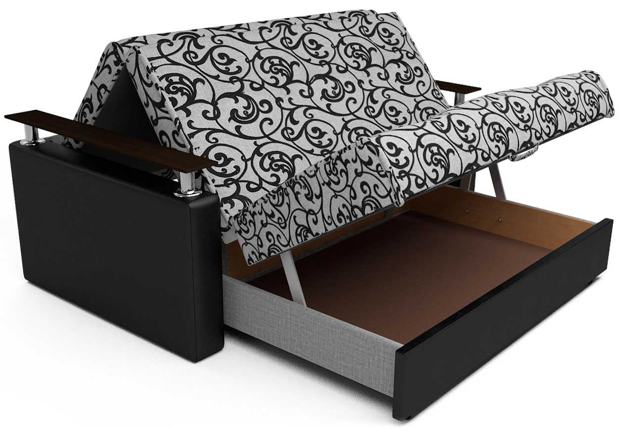 Самый простой вариант, который подразумевает два положения: место для сидения и сна. В разобранном состоянии он образует комфортное двуспальное место и имеет внутренний ящик для постельных принадлежностей.