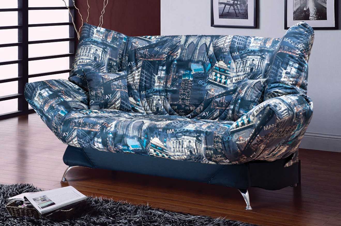 Модель со съемными подушками. Длина составляет 2400 мм, спальное место 1600х2000мм. В результате раскладывания изделие трансформируется в полноценное ложе без больших физических усилий. Каркас изготовлен из натуральной древесины, фанерных листов и древесностружечных плит. Конструкция способна выдержать человека с большим весом. Производитель оборудует нижний отсек вместительным контейнером для постельного белья.