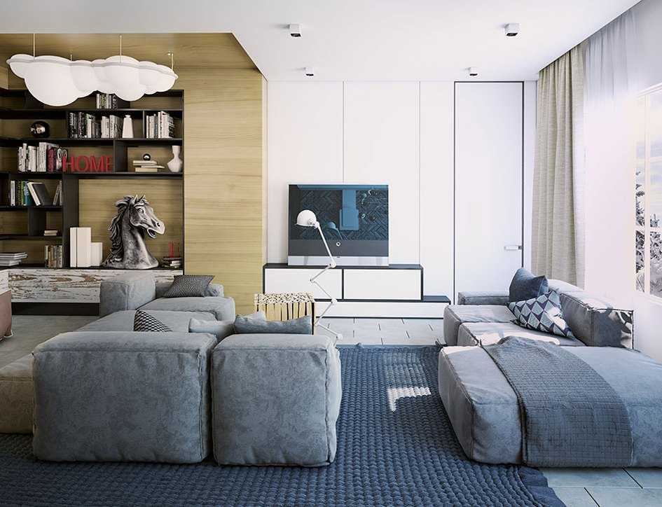 Когда спальня представляет собой отдельную комнату, а модульный диван для гостиной со спальным местом рассчитан на изредка задерживающихся гостей, можно выбирать конструкцию любого плана