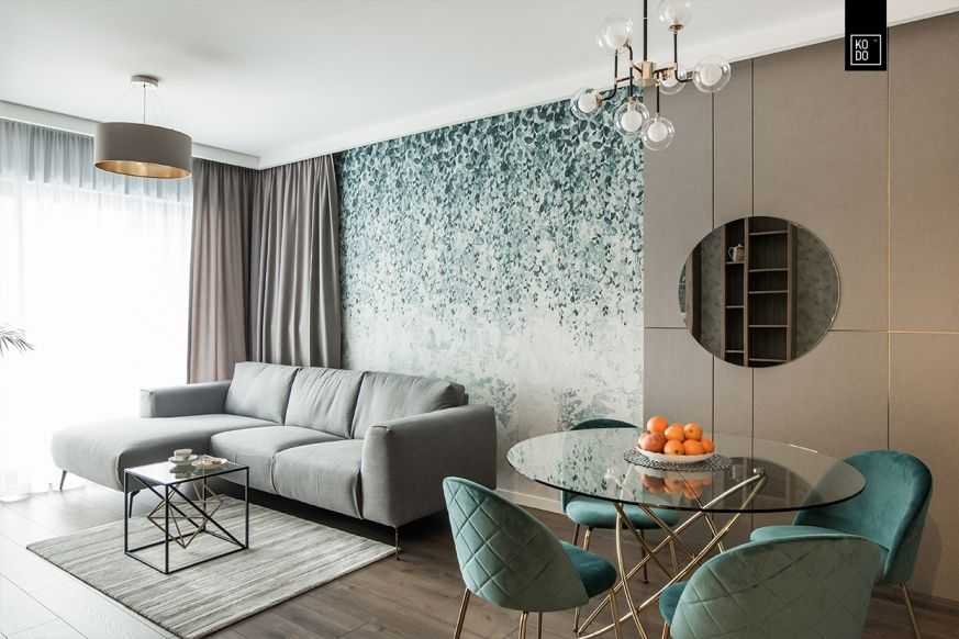 Гамма оттенков от светло-серого до темного хорошо подойдет как для создания одноцветного дизайна, так и для приглушения слишком ярких акцентов. Зал, оформленный с использованием подобных цветов, во все времена будет выглядеть модно.