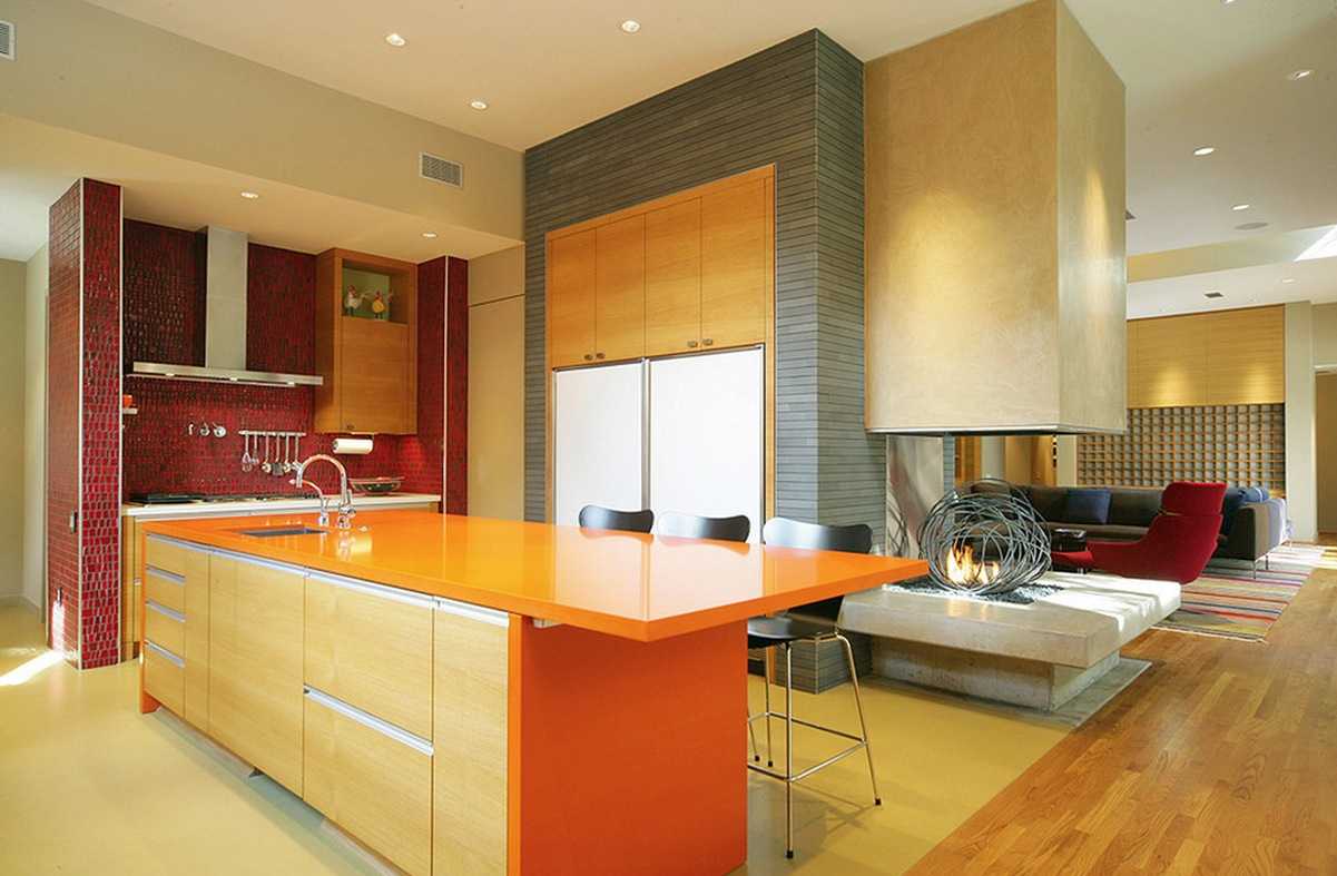 Вторым основным фактором, определяющим стиль, считается большое пространство. Современные жилые комнаты в квартире обычно высокие. Перегрузка пространства мебелью исключена. Часто кухня совмещена с гостиной, чтобы набрать лишние метры. В таких случаях кухня может появиться как в виде пристройки, занимающей только одну стену, так и по договоренности с островом.