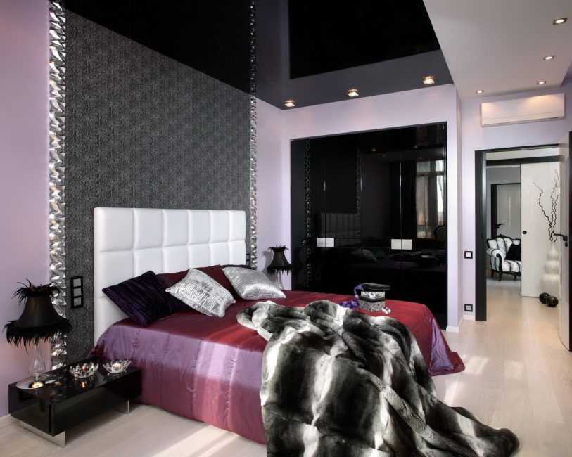 Для создания интерьера с необычным декором можно комбинировать насыщенного цвета с гладкими или узорными полотнами спокойных оттенков.