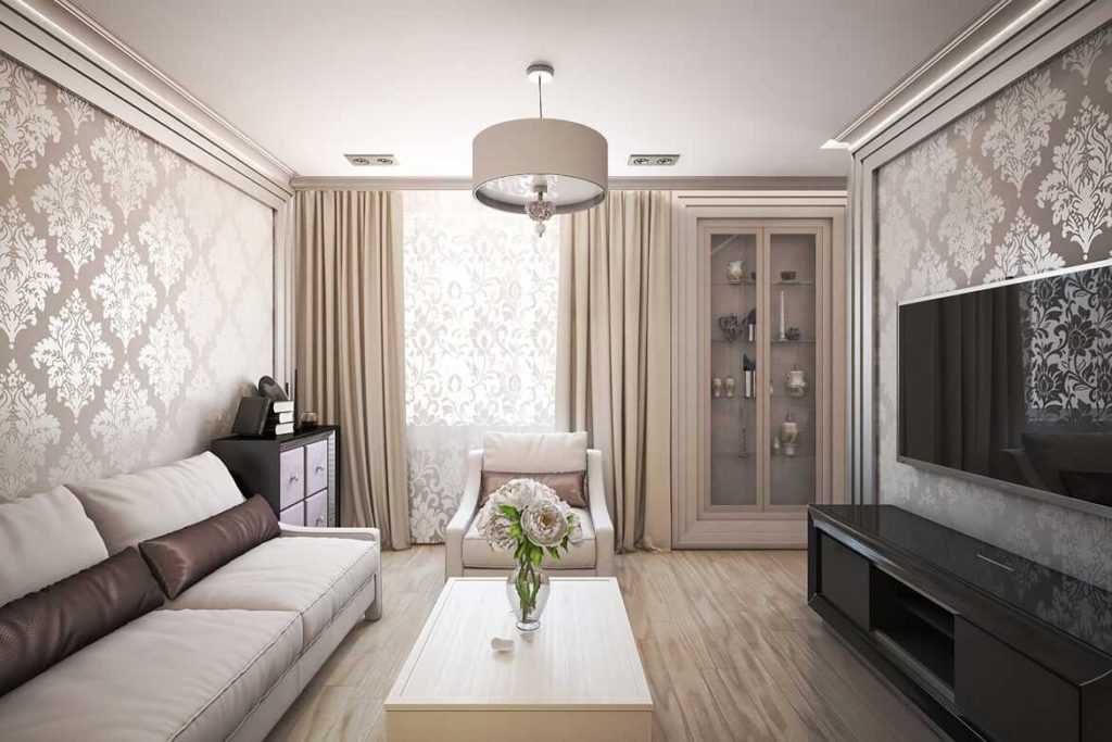 Обои в стиле неоклассика смотрятся стильно и украшают гостиную