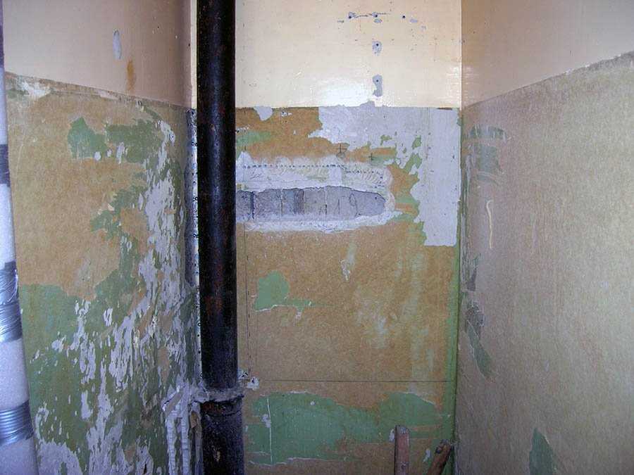 Старые водопроводные трубы и электропроводку лучше сразу заменить еще до монтажа обрешетки. Стены рекомендуется предварительно обработать грунтовкой, которая предотвратит появление плесени и грибка.