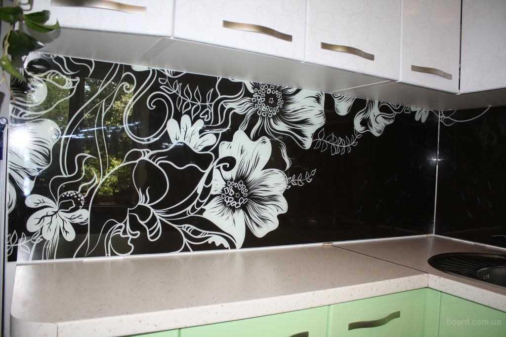 Такие панели придадут изюминку любой кухне. При помощи правильно подобранного материала можно значительно расширить пространство. На стекло можно наносить абсолютно любой узор.