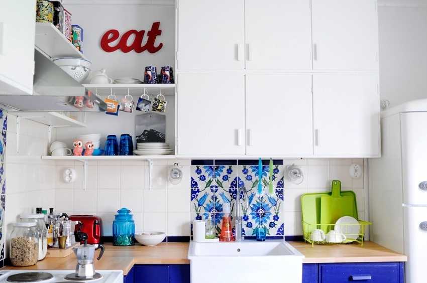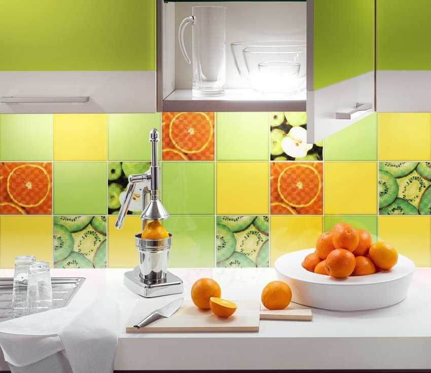 Чем разнообразить однотонный фартук из плитки на кухню: фото-примеры